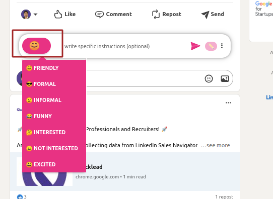 3. Adjust your tone using the Smiley icon.