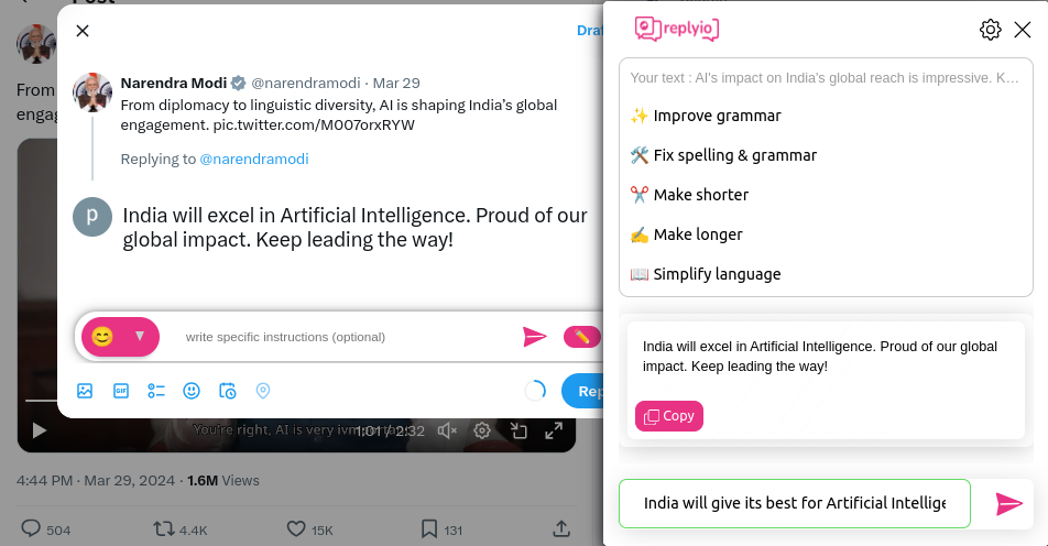 2. There is another option to add a comment, as shown in the image below. You need to click on 'Post your reply,' and you will see that Replyio will populate automatically.