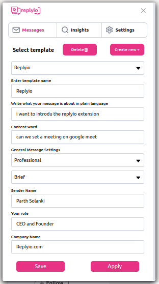 Here, you can still change the selected template for the personalized message.