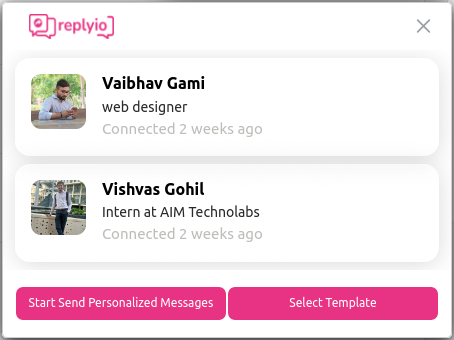 Then click on the Start Send Personalized Message button. If you haven't selected any template for the personalized message, you will see a template selection popup.
